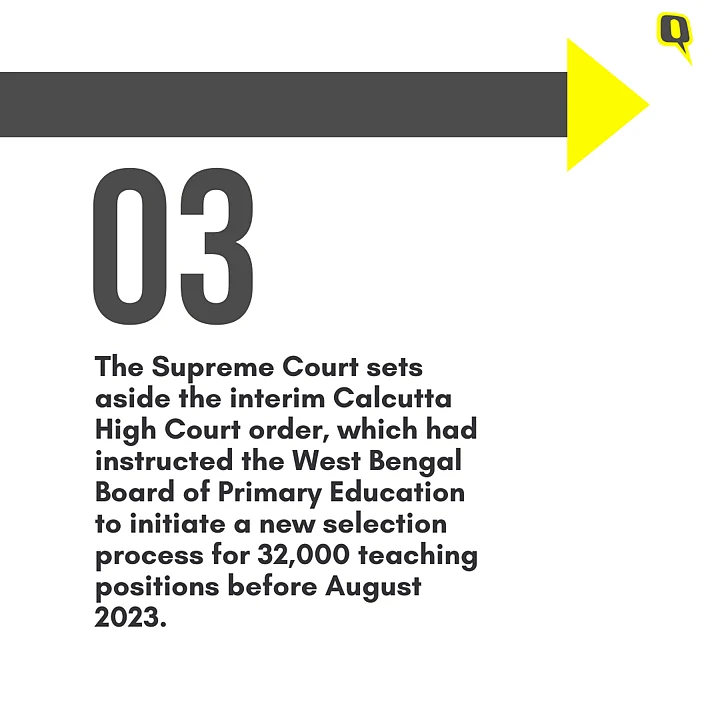 The Supreme Court set aside the interim Calcutta High Court order, which had instructed the West Bengal Board of Primary Education to initiate a new selection process for 32,000 teaching positions before August 2023.