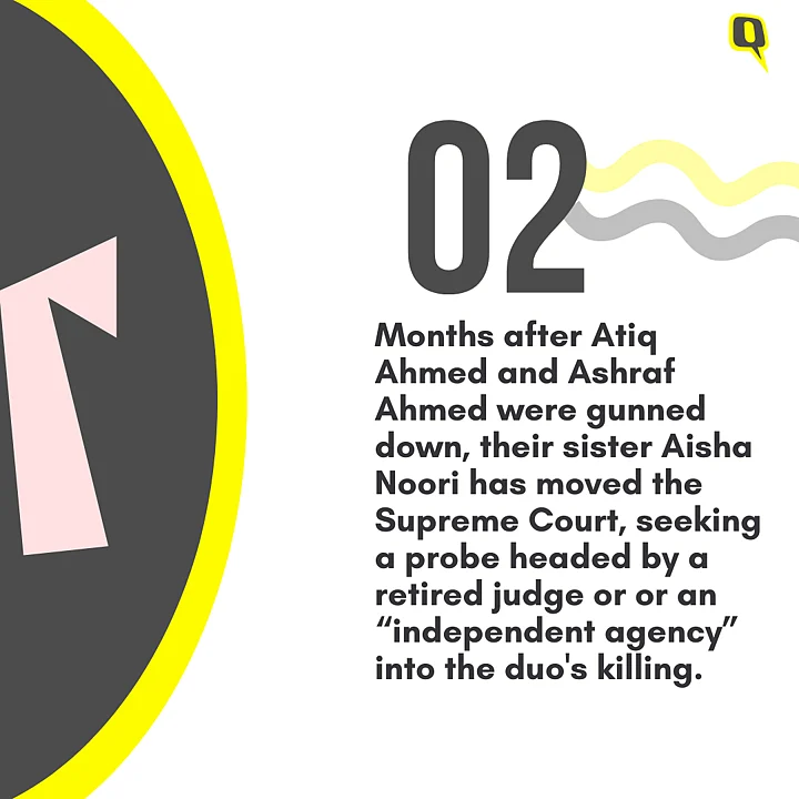 Months after gangster-turned-politician Atiq Ahmed and his brother Ashraf Ahmed were gunned down, while in police custody in Uttar Pradesh, their sister Aisha Noori has moved the Supreme Court seeking a probe headed by a retired judge or or an “independent agency” into the ‘state-sponsored killing’ of the duo.