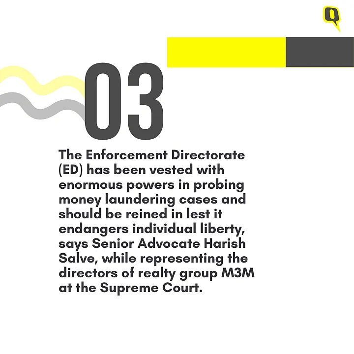During a hearing at the Supreme Court, Senior Advocate Harish Salve, representing the directors of realty group M3M said that the Enforcement Directorate (ED) has been vested with enormous powers in probing money laundering cases and should be reined in lest it endangers individual liberty.
