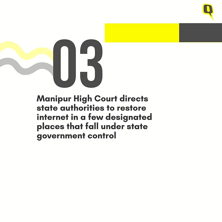 Manipur High Court on Tuesday directed state authorities to restore internet in a few designated places that fall under state government control, according to a report by LiveLaw.