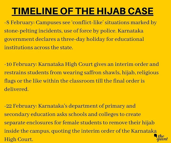 On 'Unseen Hands': Expressing dismay over how the hijab row suddenly erupted in the middle of the academic term, the court said: "The way, hijab imbroglio unfolded gives scope for the argument that some ‘unseen hands’ are at work to engineer social unrest and disharmony."