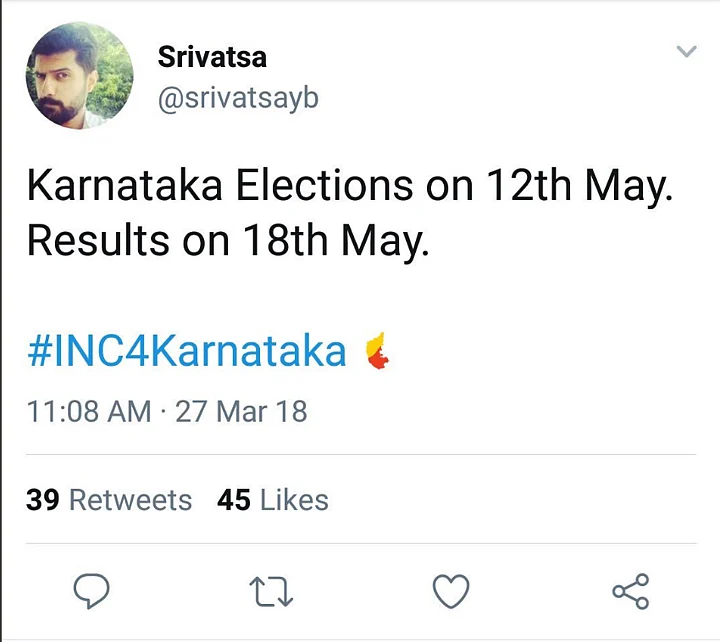Interestingly, an unverified handle, purported to be that of Karnataka Congress’s social media in-charge Srivatsa YB also tweeted the same dates as Malviya, again, before the dates were announced.