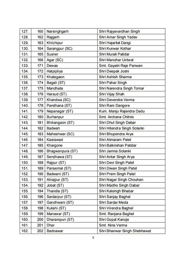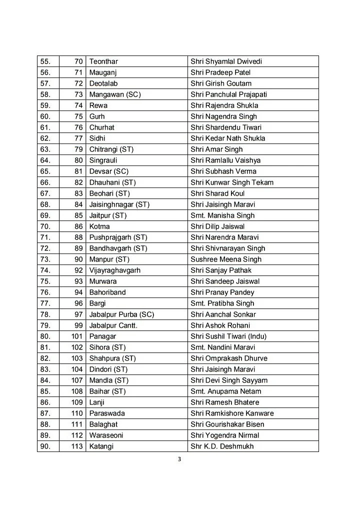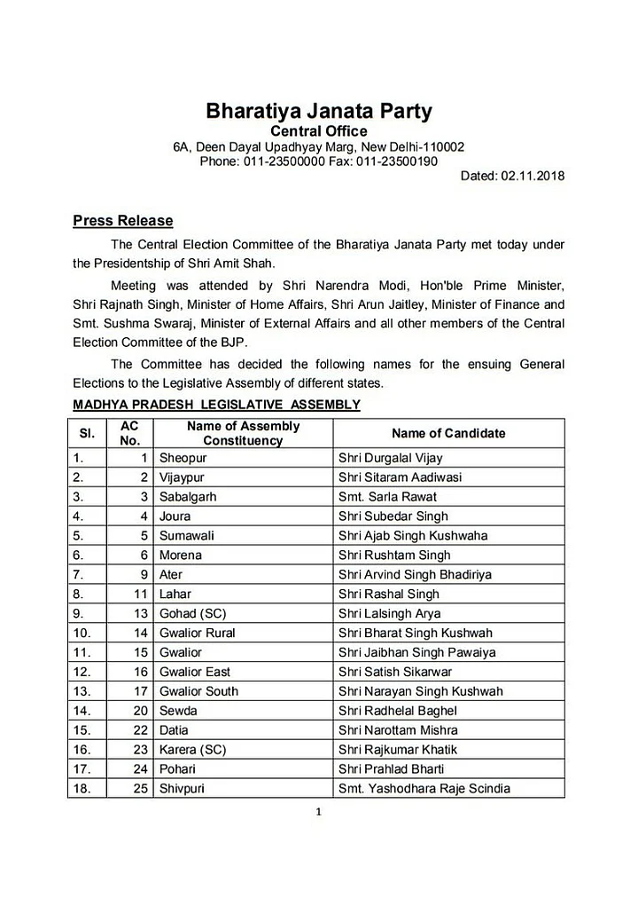 On 2 November, the party had released a list of 177 candidates that included the name of current Chief Minister Shivraj Singh Chouhan.