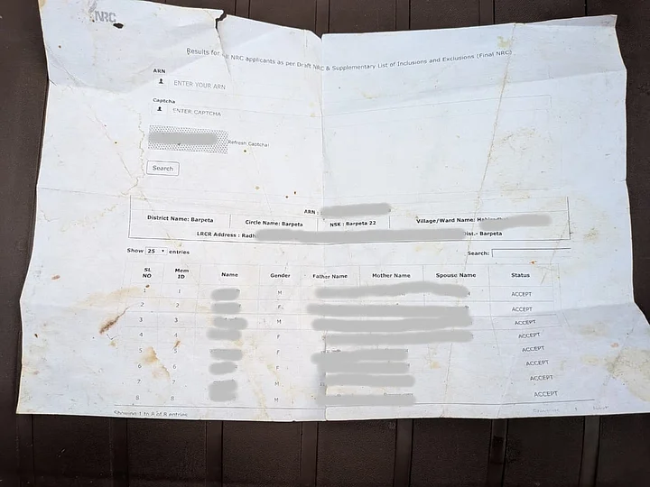 Although Salma has all her documents — Aadhar, PAN, ration card, voter card, NRC list, voter list — in place, due to a minor, clerical error, her husband's name is missing from the NRC list. Why? Because his grandfather's formal and informal names were mixed up. "I am scared for my husband that authorities will not understand. I am also scared for my sister-in-law as she does not know Hindi and only speaks Bengali," lamented Salma.