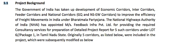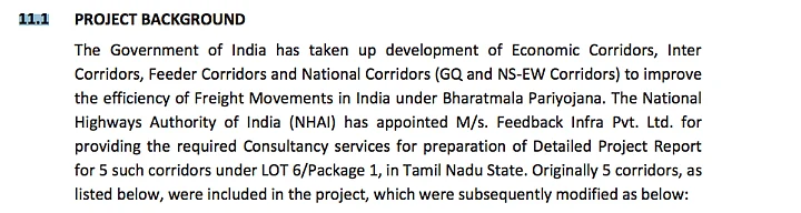The content is simply this: The government has taken up development of Economic and National corridors, and the NHAI has appointed Feedback Infra Pvt Ltd to provide consultancy services.