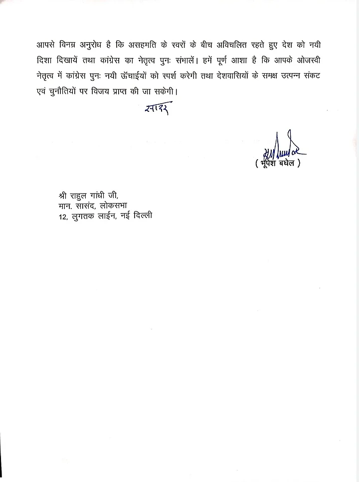 Chhattisgarh Chief Minister Bhupesh Baghel even wrote to Congress leader Rahul Gandhi requesting him to take charge as the president of the party