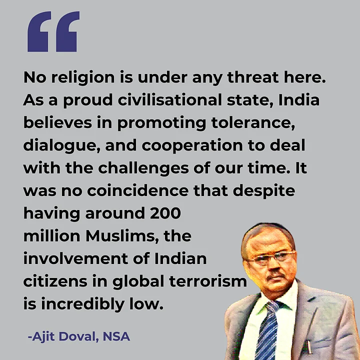 "Amongst its numerous religious groups, Islam occupies a unique and significant position of pride, with India being home to the second-largest Muslim population in the world," said National Security Advisor (NSA) Ajit Doval on Tuesday, 11 July while addressing an event by the Khusro Foundation in New Delhi.