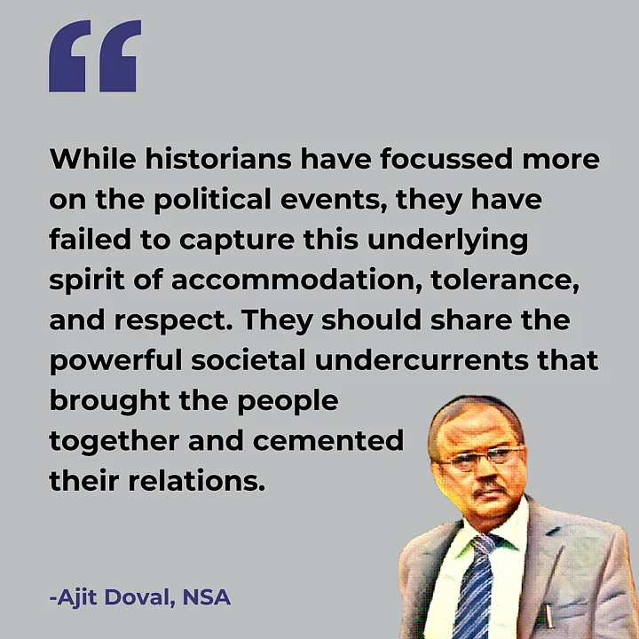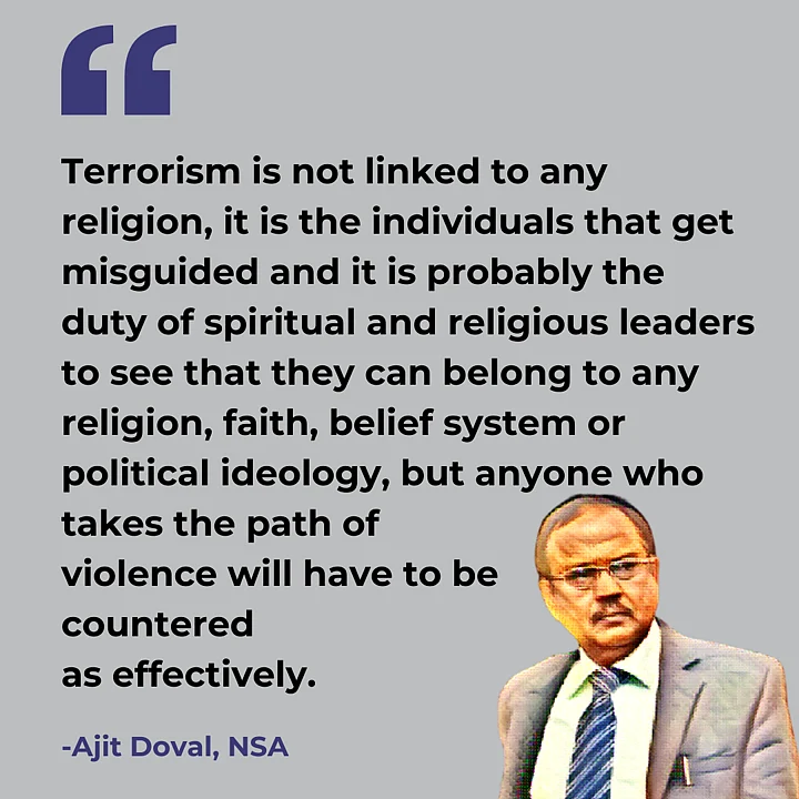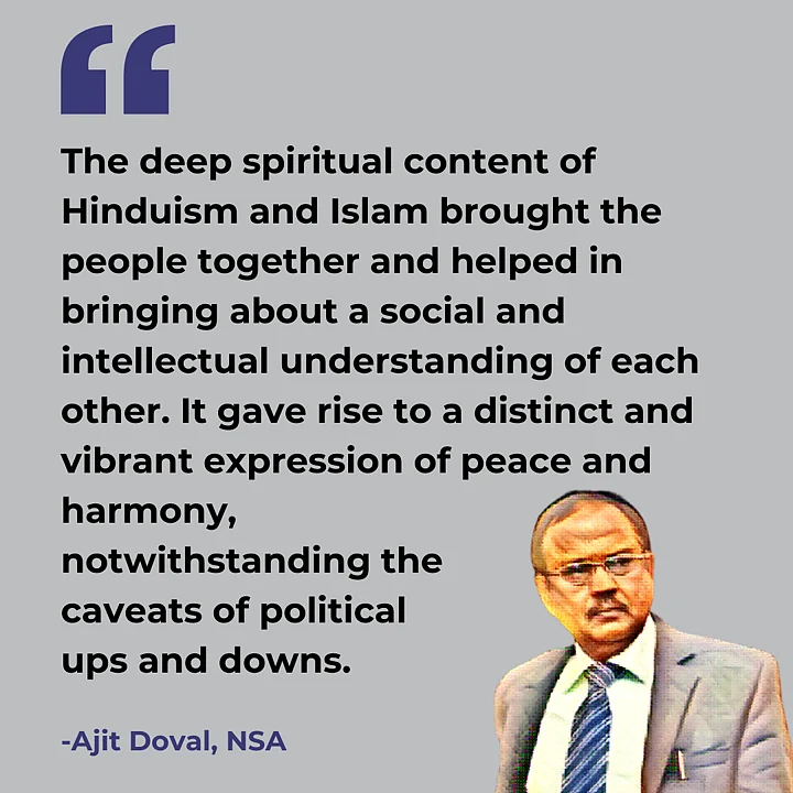 At the event attended by former Chief Election Commissioner S Y Quraishi, former Deputy NSA Pankaj Saran, chairman of the All India Sufi Sajjadanashin Council Syed Naseruddin Chishty, MP Hans Raj Hans, and several other dignitaries of various embassies, here's what Doval said:
