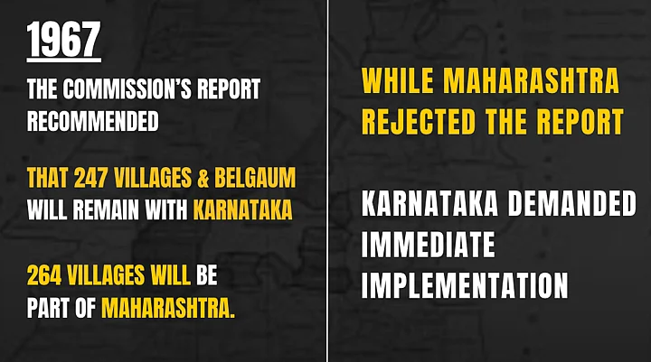 After the Mysore state was carved out of Bombay state in 1956, the State Reorganisation Act (formed as per the Fazal Ali committee) was followed that carves states out on linguistic lines. In 1966, the Mahajan committee was formed to look into Maharashtra's claims of several Marathi-majority districts and villages going to Karnataka, the report of which was published a year later and was rejected by Maharashtra.