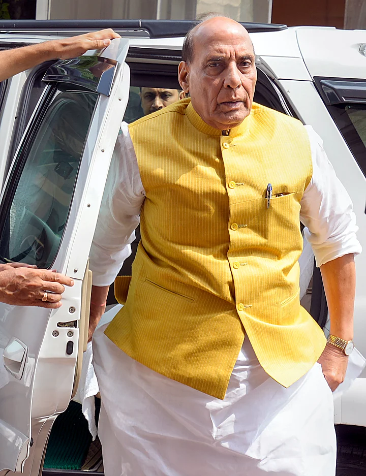 Defence Minister Rajnath Singh arrives at Parliament House complex during the Monsoon session, in New Delhi, Thursday, July 27, 2023.