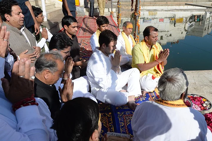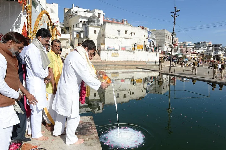 After this, Gandhi offered prayers at a Lord Brahma temple in Pushkar.