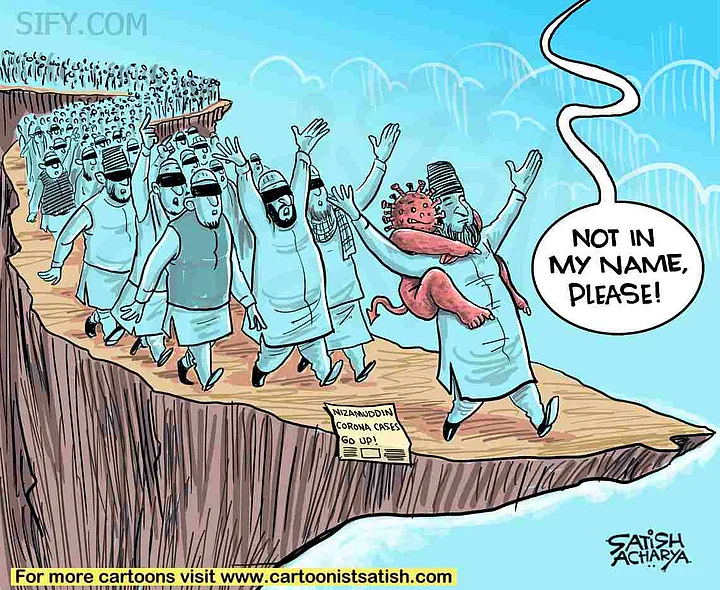 Watch the full video to know the organisations who used these headlines. Then there were cartoons that targeted the Tablighi Jamaat by using using symbols associated with Muslims like skullcaps and long beards.