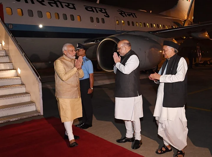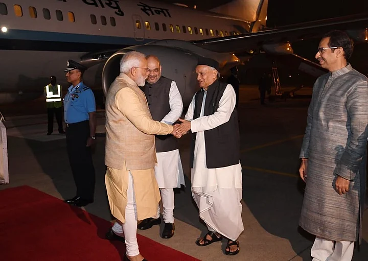 BJP leader and leader of opposition in the Assembly Devendra Fadnavis was also present when Modi arrived at the airport.