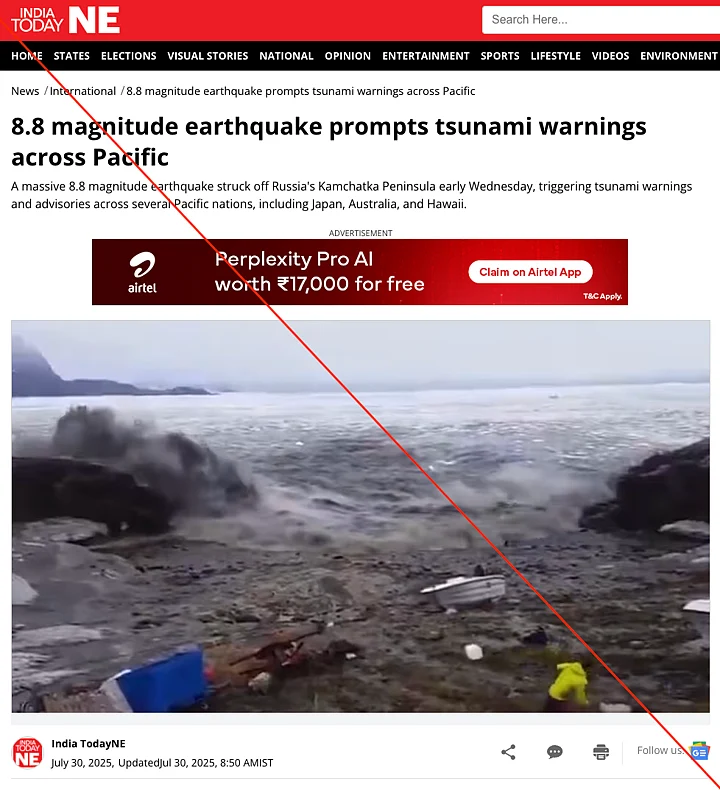 Conclusion: An old clip from 2017 of the Greenland tsunami has gone viral on social media, with users falsely linking it to the recent Russian earthquake.