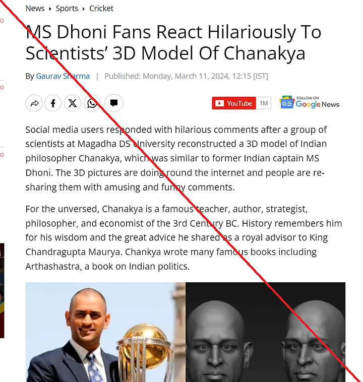 Along with this, several social media users shared the image with a caption that said, "Scientists at Magadha DS University have reconstructed this 3D model of how Chanakya, the author of Arthashastra, might have looked."