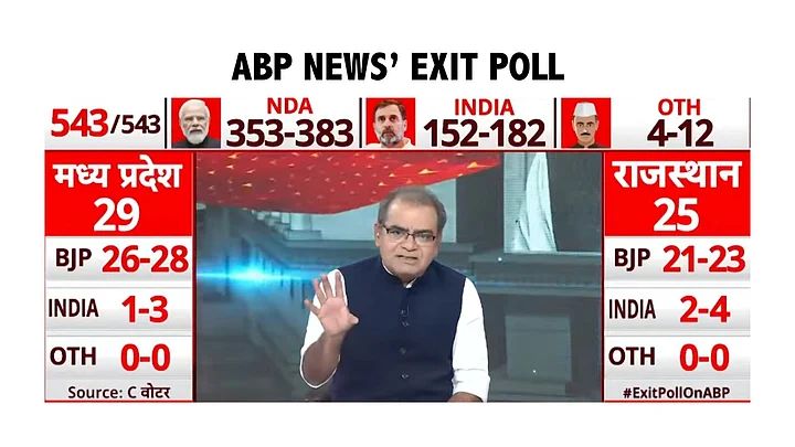 A short clip showing Hindi news organisation ABP News' exit polls for the 2024 Lok Sabha elections has gone viral on social media.