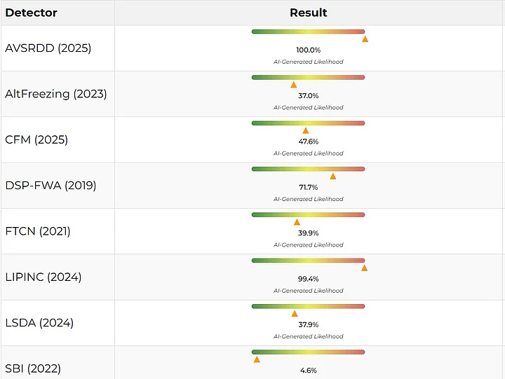 Four parameters on this AI-detection tool concluded that the video was made using AI.