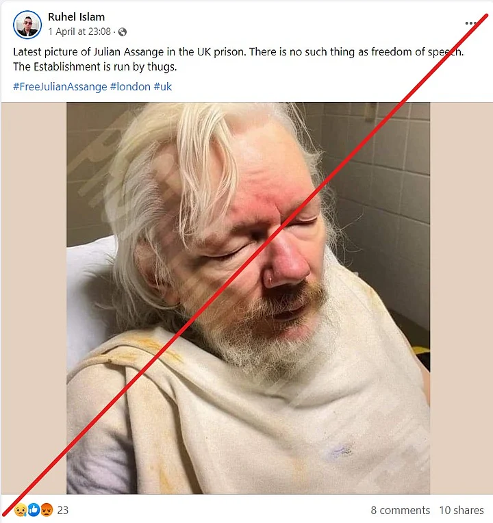 An image showing a close-up of an exhausted man is being shared with a claim that it shows Wikileaks founder Julian Assange.