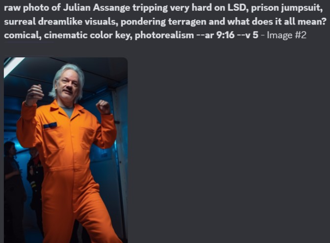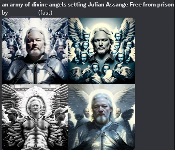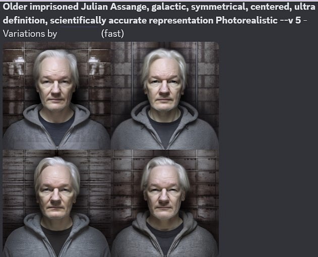 We looked for more AI-generated images of Assange of Midjourney: We searched for Assange's images with similar prompts.