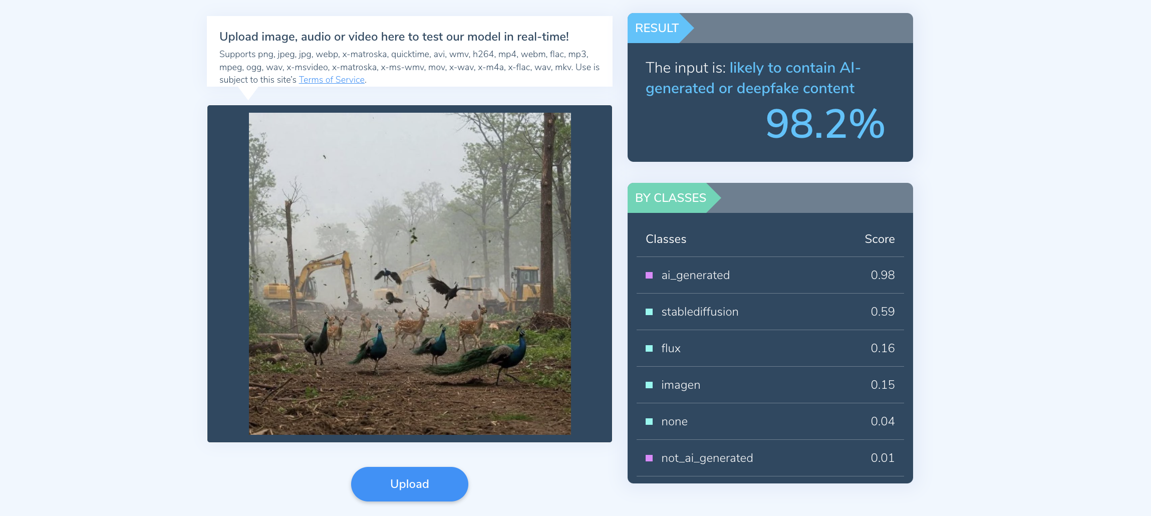 Hive Moderation concluded that the image was 98.2 per cent, "likely AI."