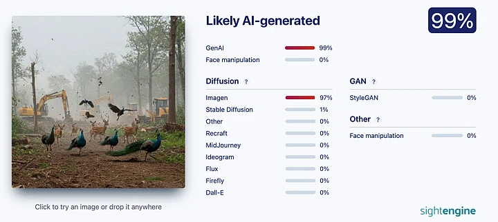 Conclusion: An AI-generated aimed to show the situation of birds and animals amid the felling of trees in Kancha Gachibowli has gone viral as real on social media platforms.