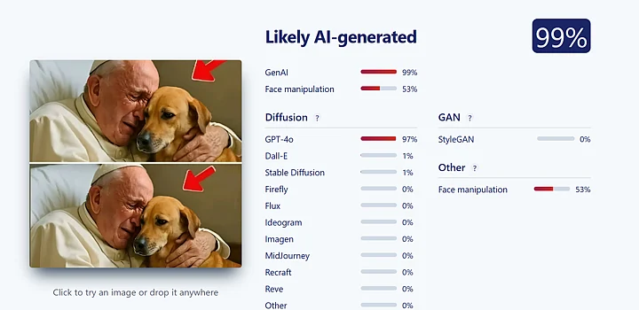 Both of the tools concluded that this image is generated using AI and is not real.