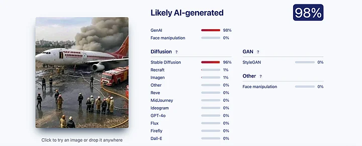 Conclusion: An AI-generated image has gone viral to falsely claim that it shows real visuals of the Air India plane crash.