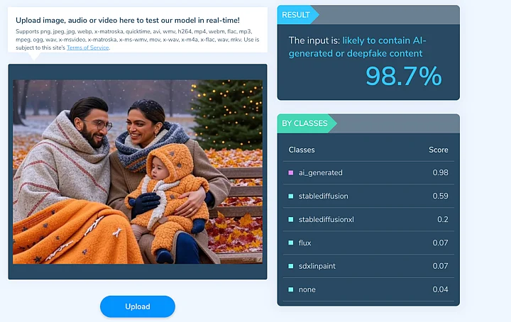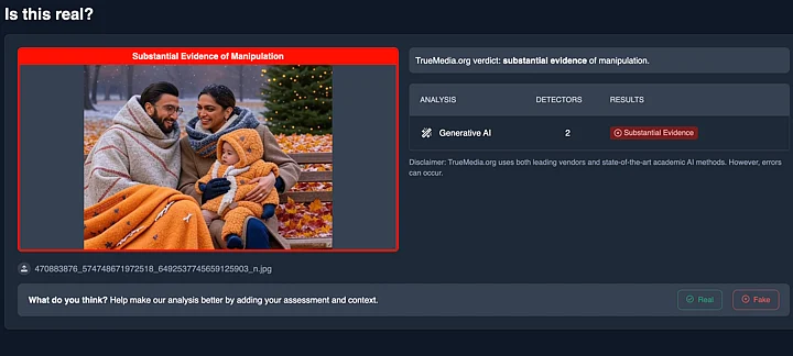 We, then, ran the images on AI-detection websites such as TrueMedia and Hive Moderation. The results are the following.