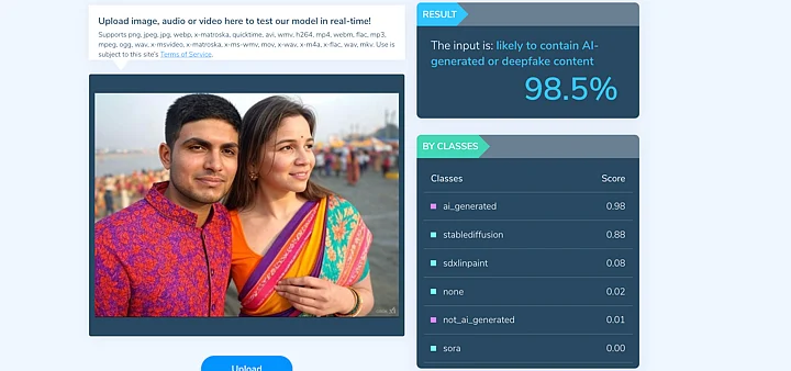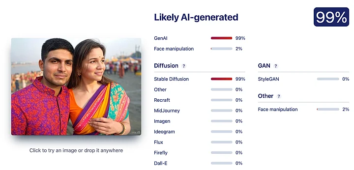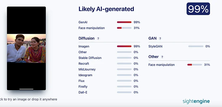 We then ran the images on AI-detection websites such as Hive Moderation and Sightengine.