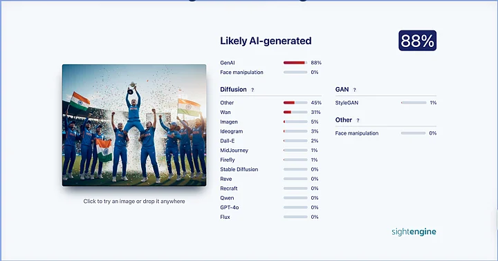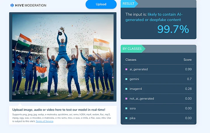 What did AI-detection tools show?: Team WebQoof ran the viral images through two AI-detection tools—SightEngine and Hive Moderation.
