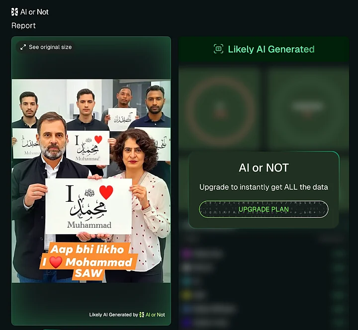 An image showing Congress leaders Rahul Gandhi, Priyanka Gandhi Vadra, and a few other people holding up a poster reading 'I Love Muhammad' is being widely shared on social media.