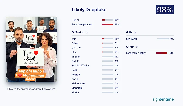 To verify this, we ran the image through three AI-generated content detectors, namely, SightEngine, Was it AI, and AI or Not.