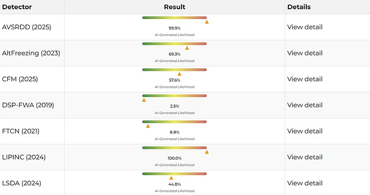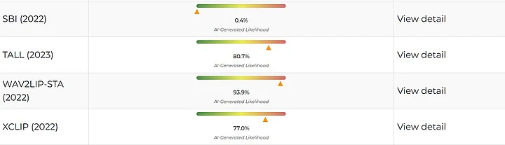 This led us to run the video on the AI-detection tool Deepfake-O-Meter which revealed that the clip was created using AI.
