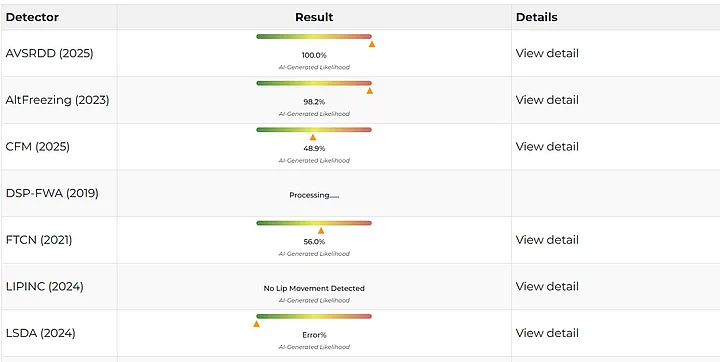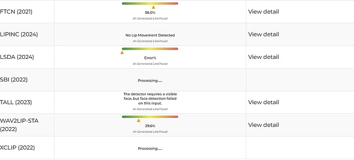 This led us to check the video on AI-detection tool, Deepfake-O-Meter, where two of its parameters revealed that the clip was AI-manipulated.