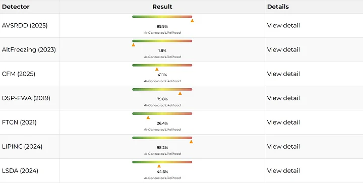 This led us to run the viral clip on AI-detection tool Deepfake-O-Meter which revealed that the video was AI-generated.