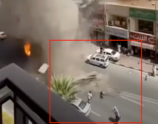 Irregularities in the video: Upon close examination of the viral clip, we noticed anomalies, such as illegible text on the building and the overly smooth movement of bystanders at the time of the explosion.