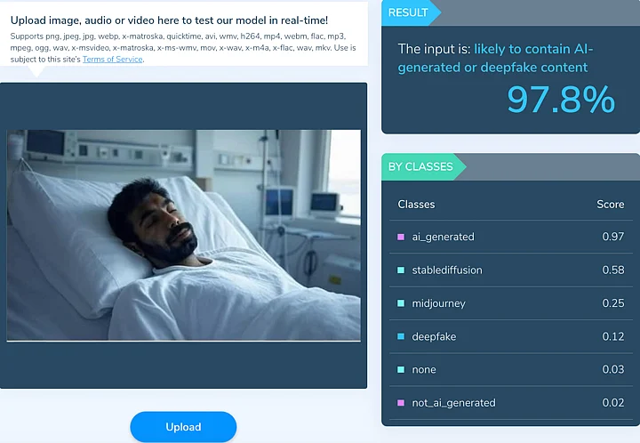 Following this, we checked the image on AI-detection websites such as Sightengine and Hive Moderation.