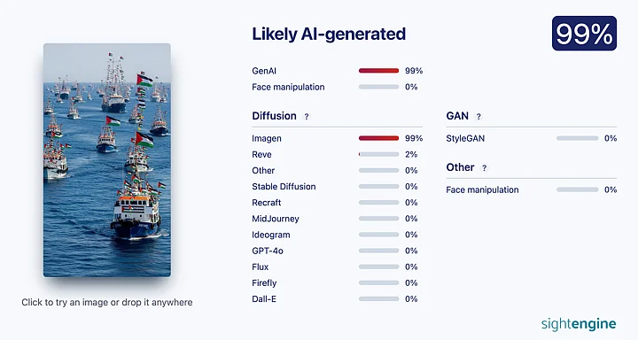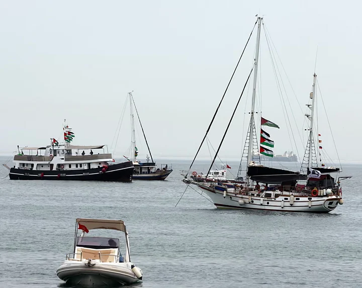 An image showing a fleet of boats with Palestinian flags has gone viral, claiming to depict a flotilla of humanitarian aid and activists departing from Tunisia for Gaza to challenge Israel's blockade, which has caused starvation and scarcity in the region.