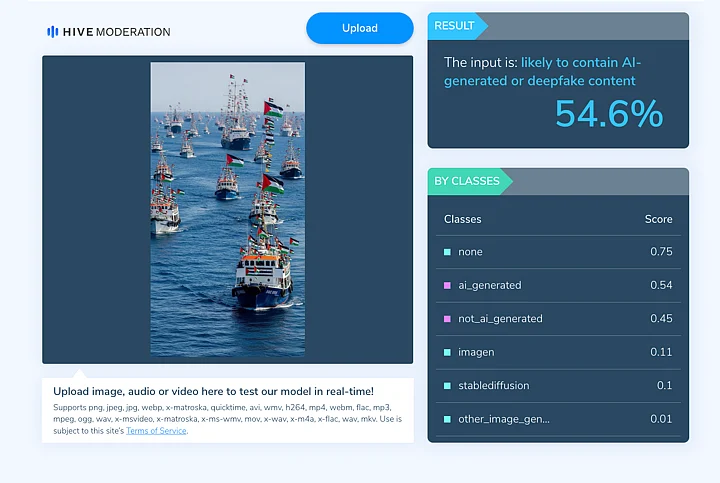 Sightengine and Was It AI were completely sure that the image was AI however, Hive Moderation concluded that it was only 54.6 per cent sure that it was created with AI.