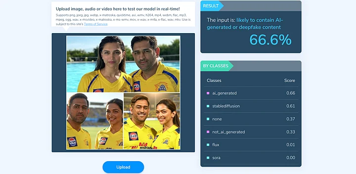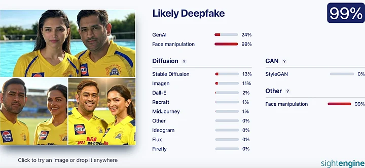 Using AI-detection tools such as Hive Moderation and Sightengine, we found that the images were "likely" deep fake or AI-generated. Sightengine gave 99 per cent that the image contained face manipulation and Hive Moderation was 66.6 per cent.