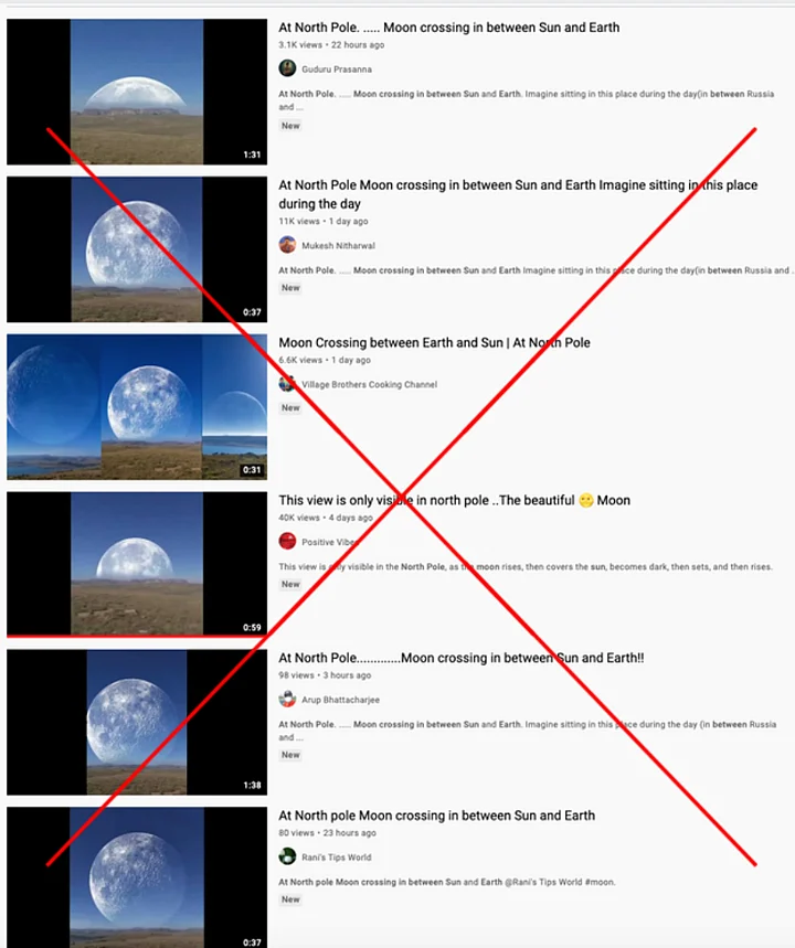 A viral video claims to show appearance of a giant moon blocking the sun for a few seconds and then disappearing, all of this purportedly taking place in the Arctic, between Russia and Canada.
