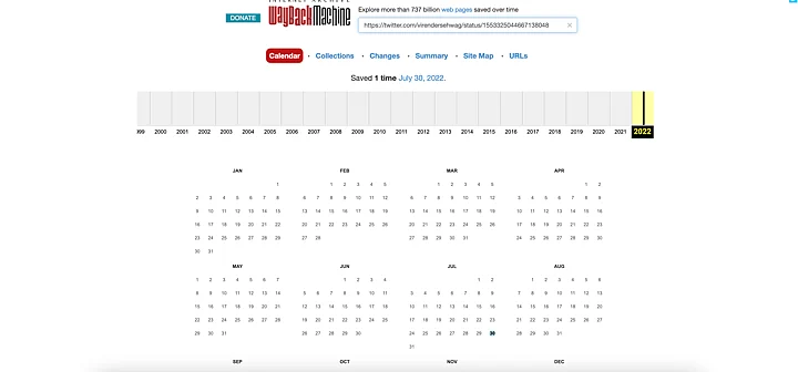 After Sehwag was called out on social media, he deleted the tweet. While the were screenshots available, the post didn't exist anymore. In this case, if you still have the original tweet link, you could use that and look if an archive exists using online tools like Wayback Machine, Archive.is etc.