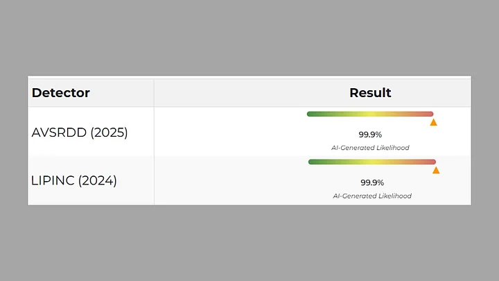 Two detectors of the second tool gave over 99 percent probability of the video being an AI one.