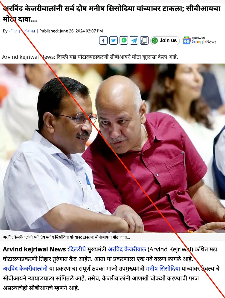 How did we find out the truth?: We performed a relevant keyword search using 'Arvind Kejriwal blames Sisodia for scam' on Google and this led us to a report by Live Law published on 26 June 2024.