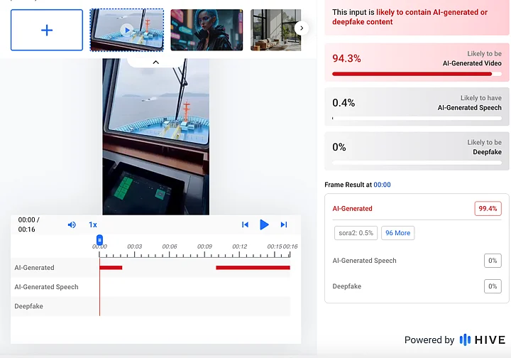 This led us to run the video AI-detection tool Hive Moderation, which revealed that the video was created using AI.