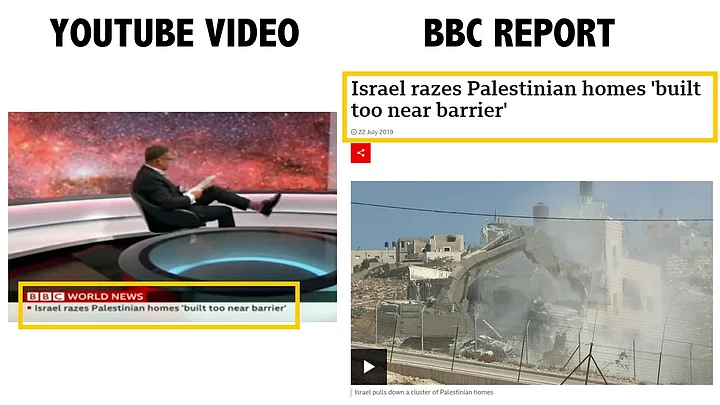 The bulletin also showed multiple headlines, amongst which one read, "Israel razes Palestinian homes 'built too near barrier".