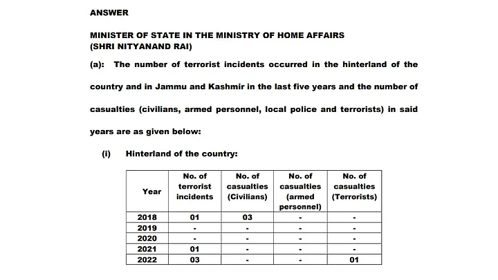 In our fact-check back in 2021, we came across the former Union Minister of State for Home Affairs G Kishan Reddy's response in the Lok Sabha, where he said that there had been six incidents of terrorist activities between 2014 to 2021 in the country.