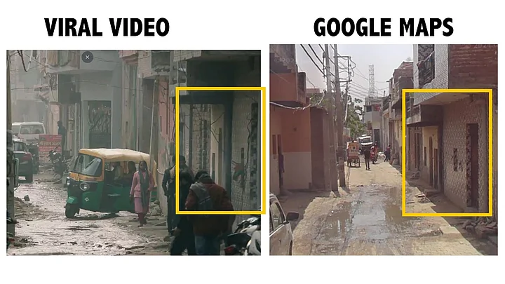 Comparing visuals: We compared keyframes from the viral clip to the visuals available on Google Maps and found that the video was indeed recorded in Haryana.