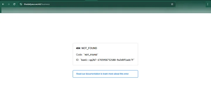 We, then, looked around the website and found that certain sections such as the 'Entertainment' vertical and 'Business' vertical had no information and showed a '404 error.'
