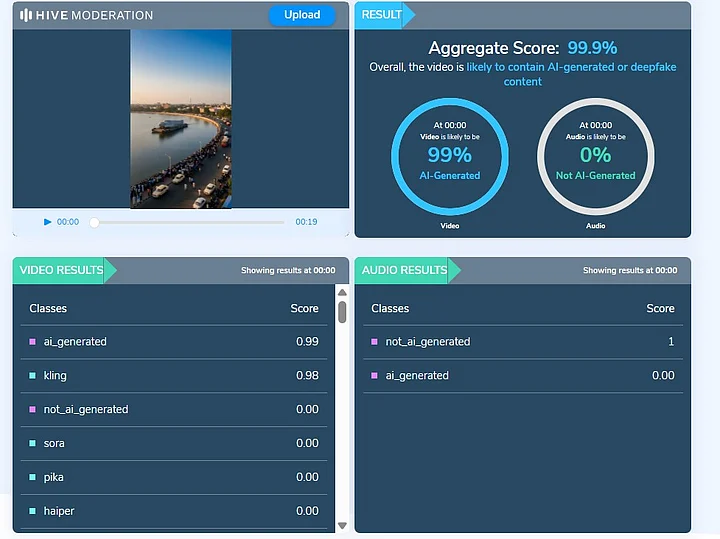 The first tool showed around 99.9% probability of the video being an AI-generated one.